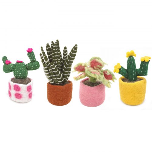 A gorgeous collection of Cacti in different funky styles. Peculiar forms and vibrant colours, plus without the prickles and upkeep – the perfect gift for even the most disastrous gardener. Each cactus has been handcrafted using traditional needle felting techniques from sustainable and biodegradable materials. Please note this is a standing decoration and the cost is inclusive of ONE unit – not a set. Choose four of one style of cactus or choose a variety pack and get one of each. Please note variety packs must be purchased in increments of 6.