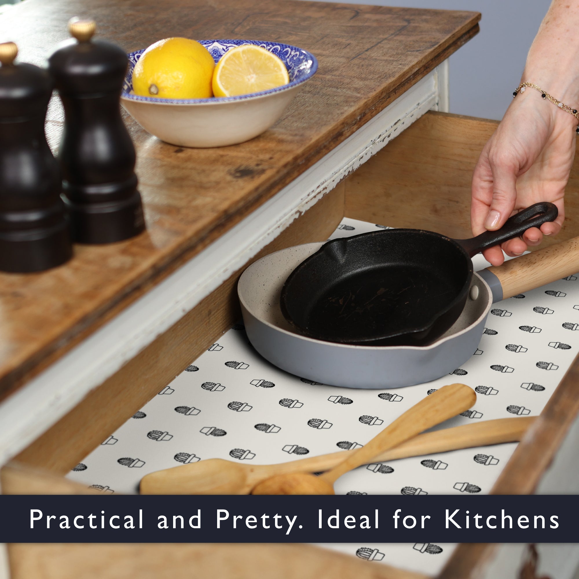 The Master Herbalist UNSCENTED & WIPE CLEAN Drawer Liners with a CACTUS Design (ROLLED) Beautifully designed UNSCENTED & WIPE CLEAN Drawer Liners from The Master Herbalist. Perfect for Kitchen Drawers, Shelves, Cupboards & Cabinets.WIPE CLEAN paper allows for spillages, dust and dirt to be wiped away with a wet cloth. The high quality LAMINATED paper is robust to resist water and stains. When mess occurs, simply wipe clean with a damp cloth. The design is a contemporary CACTUS PRINT in BLACK & OFF WHITE. – ROLLED Gift Box of 5 UNSCENTED SHEETS: Largest drawer liners available by any manufacturer: 60 x 42cm (23.6″ x 16.5″) can be cut and folded to fit all drawers or doubled up. Perfect pattern repeat means drawer liner sheets can be overlaid for larger draws and shelves. NON-ADHESIVE backing – if needed they can be fixed in place with tape or tack.- 100 % SUSTAINABLE & MADE IN THE UK. FSC approved paper, Recyclable Outer Box and Paper Sheets. PET 5 Inner Sleeve also recyclable. MANUFACTURED AND SOLD FROM Suffolk, England.- FLAT RATE SHIPPING on all drawer liner orders. ORDER MORE Drawer Liners for the same shipping price. We also sell Scented Drawer Liners, Wardrobe Fresheners and Moth Herbs.