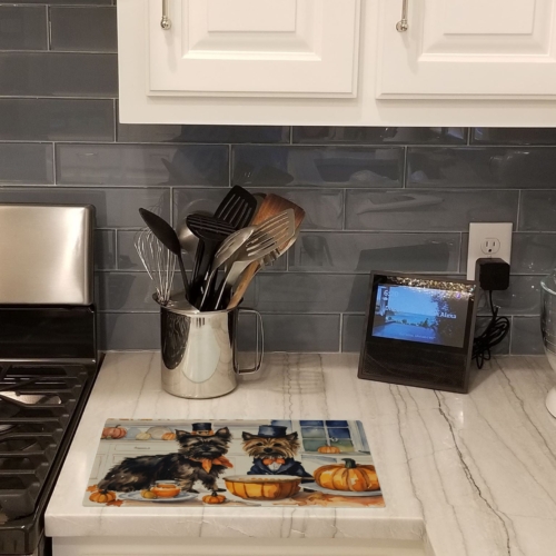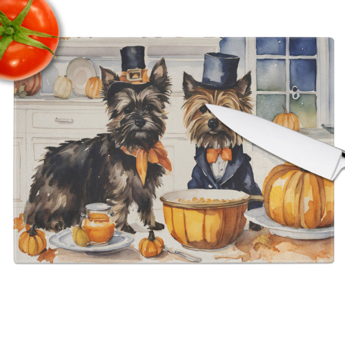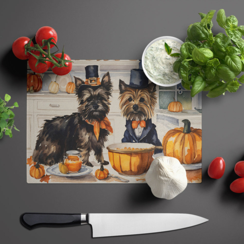 Cairn Terrier Fall Kitchen Pumpkins Glass Cutting Board