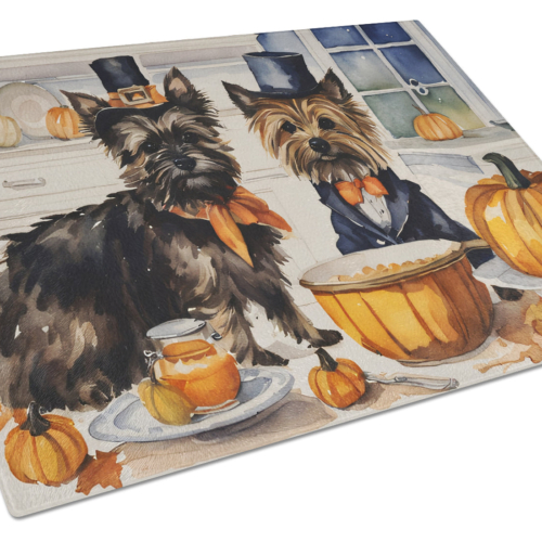 Cairn Terrier Fall Kitchen Pumpkins Glass Cutting Board