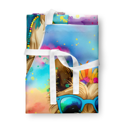 Apron featuring breed specific Cairn Terrier artwork. Elevate your cooking, baking, and grilling experiences with our versatile Kitchen or BBQ Apron. This Bib Style apron isn’t just limited to culinary activities – it also serves as an excellent baking apron, artist apron, server apron, gardening apron, or even a dog grooming apron. The apron showcases vibrant full-color artwork contributed by one of our talented artists, bringing a dash of style to your daily tasks. With dimensions of approximately 27″W x 30″H, it provides ample coverage to protect your clothing from spills and splashes. Our apron is meticulously crafted from 100% Ultra Spun Polyester, known for its durability and lightweight nature. The apron comes with white tie straps, ensuring a comfortable and adjustable fit for all. It’s a perfect choice for kitchen apron enthusiasts, whether you are a woman or a man. Designed for easy maintenance, this apron is fully machine washable. The quick-drying polyester material actively reduces staining, keeping your apron looking fresh and new for longer. Our beautifully designed apron isn’t just a functional kitchen accessory – it’s a fashion statement in the culinary world!