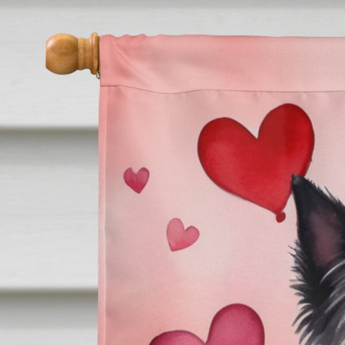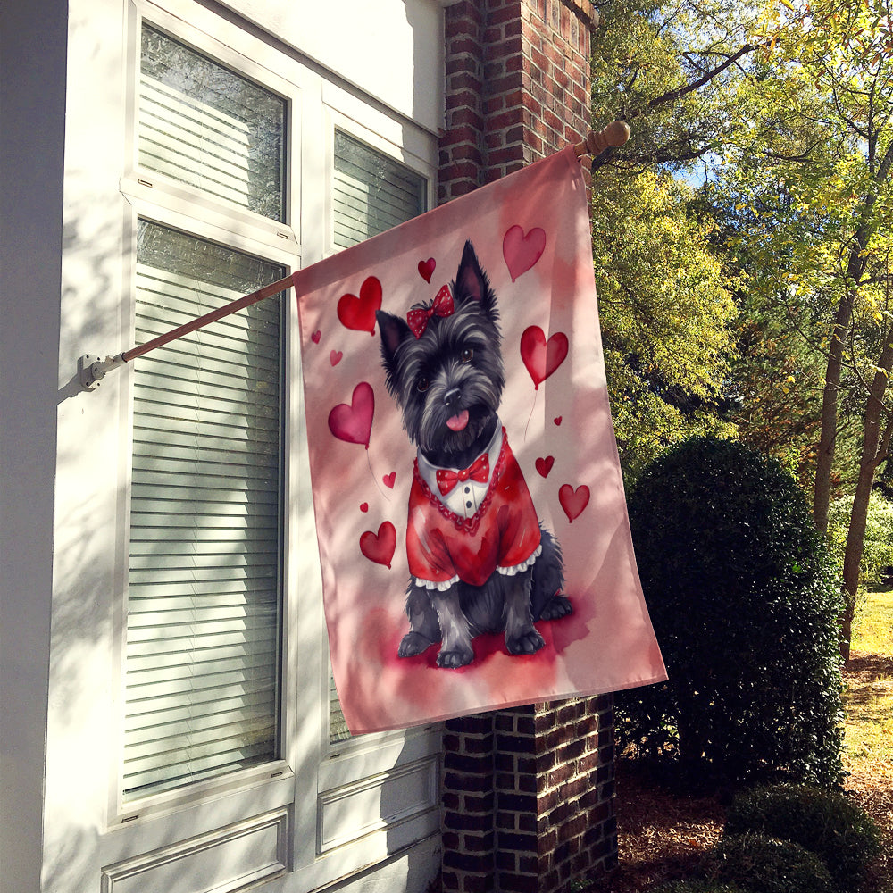 House Flag featuring breed specific Cairn Terrier artwork. Celebrate Valentine’s Day with this Valentine’s Day Large Flag. Presenting our Heavy Duty Polyester House Size Decorative Sleeve Pole Flag, a vibrant addition to enhance the aesthetic appeal of your home. This large decorative flag, measuring approximately 28 x 40 inches, offers ample coverage and visibility. Each flag is meticulously sewn and made individually, ensuring a unique piece that may slightly vary in size. It’s a sleeve pole flag, designed to fit a standard decorative flag pole effortlessly. Please note that the flag pole and bracket are not included and should be purchased separately. What sets our flag apart is its dual-sided print. The design is mirrored on both sides of the fabric, allowing for uniform visibility regardless of the angle. Printed in full color, our flag showcases vibrant hues that truly stand out. To ensure lasting vibrancy and durability, the dyes are heat-set into the fabric. This ensures your flag remains bright and captivating through various weather conditions. Elevate the look of your home with our Heavy Duty Polyester House Size Decorative Sleeve Pole Flag!