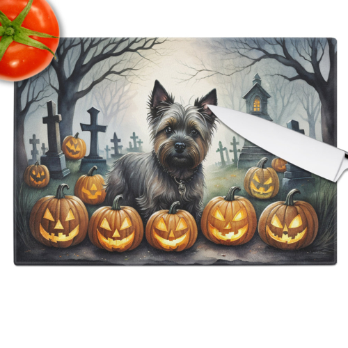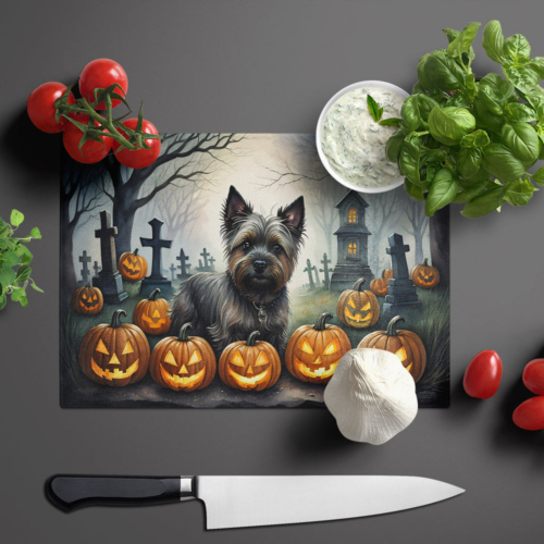 Glass Cutting Board featuring breed specific Cairn Terrier artwork. Celebrate Halloween with this Halloween Cutting Board. Introduce your kitchen to the vibrant, large Decorative Glass Cutting Board from Caroline’s Treasures. Crafted from resilient tempered glass, this board is not only a utilitarian necessity but also a colorful art piece. With its generous dimensions of 15 inches in height and 12 inches in length, it offers ample space for all your cutting needs. Every piece showcases captivating artwork from distinguished artists, bringing an aesthetic edge to your kitchen. Beyond its attractive design, this cutting board ensures your countertop stays pristine and unscathed, owing to its heat-resistant properties. Engineered with user convenience in mind, it features non-skid feet for stability, and rounded corners for additional safety. Its robust construction renders it virtually unbreakable, guaranteeing longevity. The board comes with protective feet bumpers, maintaining its position during use. This product is recommended to be hand washed only. Proudly printed and assembled in the United States, this cutting board exemplifies superior craftsmanship. With Caroline’s Treasures’ Decorative Glass Cutting Board, you’re investing in a blend of functionality and artistic flair.