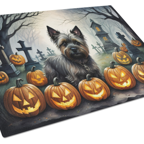 Glass Cutting Board featuring breed specific Cairn Terrier artwork. Celebrate Halloween with this Halloween Cutting Board. Introduce your kitchen to the vibrant, large Decorative Glass Cutting Board from Caroline’s Treasures. Crafted from resilient tempered glass, this board is not only a utilitarian necessity but also a colorful art piece. With its generous dimensions of 15 inches in height and 12 inches in length, it offers ample space for all your cutting needs. Every piece showcases captivating artwork from distinguished artists, bringing an aesthetic edge to your kitchen. Beyond its attractive design, this cutting board ensures your countertop stays pristine and unscathed, owing to its heat-resistant properties. Engineered with user convenience in mind, it features non-skid feet for stability, and rounded corners for additional safety. Its robust construction renders it virtually unbreakable, guaranteeing longevity. The board comes with protective feet bumpers, maintaining its position during use. This product is recommended to be hand washed only. Proudly printed and assembled in the United States, this cutting board exemplifies superior craftsmanship. With Caroline’s Treasures’ Decorative Glass Cutting Board, you’re investing in a blend of functionality and artistic flair.