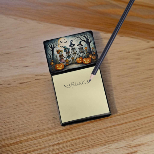 Celebrate Halloween with this Halloween Sticky Note Holder. Add a touch of creativity and flair to your desk with the Decorative Sticky Note Holder from Caroline’s Treasures. This uniquely designed sticky note dispenser will not only keep your notes in one place but also add an artistic element to your workspace. The top of the holder features beautiful artwork that is sure to catch the eye. Crafted for convenience, this sticky note holder comes with a small pad of 3-inch x 3-inch sticky notes at the bottom. The holder is designed for easy refilling; simply remove the last sheet of a new sticky note pad and stick it onto the board. This feature ensures you will always have sticky notes at your disposal. This Sticky Note Holder makes a perfect gift. Be it for your colleagues at work, your Facebook friends, or even your dog groomer or hairdresser, this versatile product fits the bill. You can use it for making grocery lists, leaving notes for loved ones, or for jotting down important reminders. The bottom board is rigid and can be magnetized by adding a business card size magnet to the back (sold separately). This makes it even more versatile, allowing you to place it on a refrigerator or any other magnetic surface. With this Sticky Note Holder, you’re not only organizing your notes, but also personalizing your space.