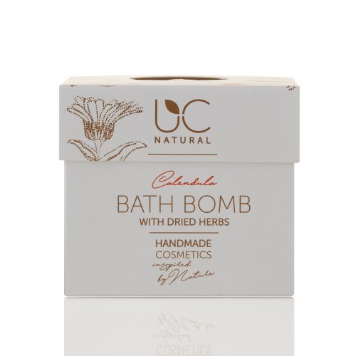 UC Natural Handmade Bath Bomb with sea salt and grape seed oil nourishes and softens the skin. Natural ingredients and aroma of Calendula will turn your bathing time into an enjoyable ritual. You will feel the pure touch of Nature with the addition of dried herbs.