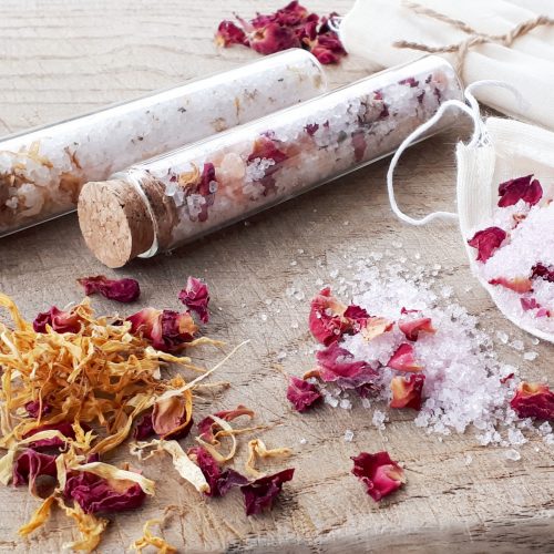 Add one or two spoonfuls of the bath salts to the warm water and let them dissolve before slipping into the tub. Shake well before each use. Store in a cool, dark place.