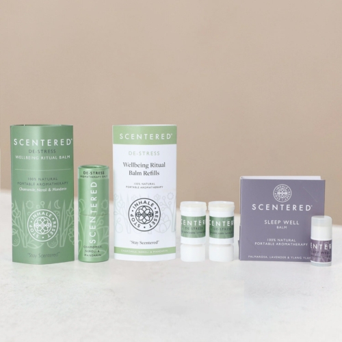Scentered De-Stress Aromatherapy Balm – Natural Essential Oil Blend for Calm & Relaxation Experience the soothing power of Scentered’s De-Stress Aromatherapy Balm, a luxurious, all-natural blend of essential oils designed to reduce stress and promote a sense of calm. Ideal for on-the-go relaxation, this balm is perfect for busy lifestyles or moments when you need to unwind. Nourishing & Hydrating: This rich, non-greasy balm doubles as an essential body oil, providing deep hydration and leaving your skin feeling soft, smooth, and radiant. Infused with natural ingredients, it absorbs quickly for all-day moisture and a subtle, calming scent. The Calm Restore Wellness Balm Collection: Includes the De-Stress Balm, two Wellbeing Ritual Balm Refills, and a Sleep Well Balm—everything you need for a complete wellness ritual. The perfect way to relax, restore, and refresh your mind, body, and skin.