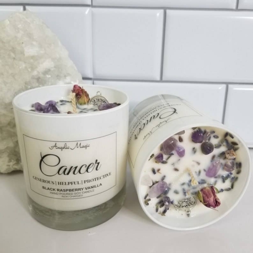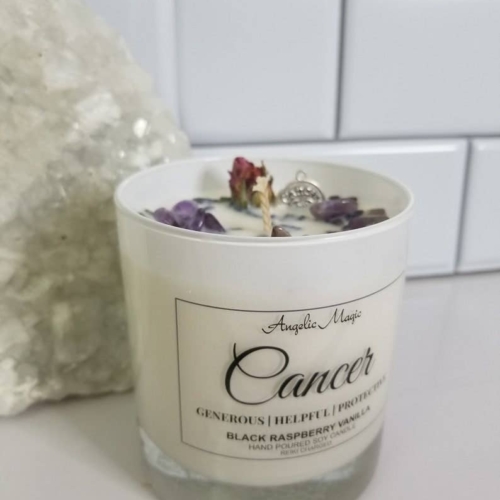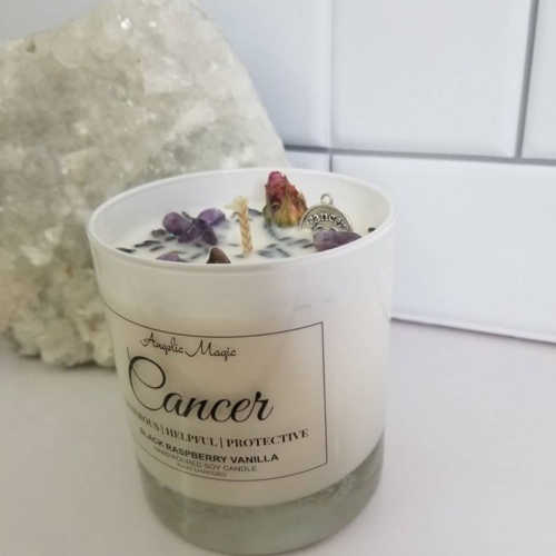 100% Natural Soy WaxNon-Toxic Fragrance & Essential OilsScent Black Raspberry VanillaCrystals – AmethystReiki ChargedBlack Jar LidAmethyst is a protective stone that helps to relieve stress and anxiety in your life, and the symptoms that accompany it, namely headaches, fatigues, and anxiety. It also aids in cell regeneration (supporting your bones and joints) and is reputed to improve your skin.