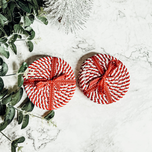 Add spice to your table with these coasters that are as festive as a fruitcake at a Summer or Christmas dinner! With a candy cane stripe pattern and braided flair, they’re like the Santa hats of your coffee table, protecting it with style. Say goodbye to those pesky water rings and hello to coaster perfection!