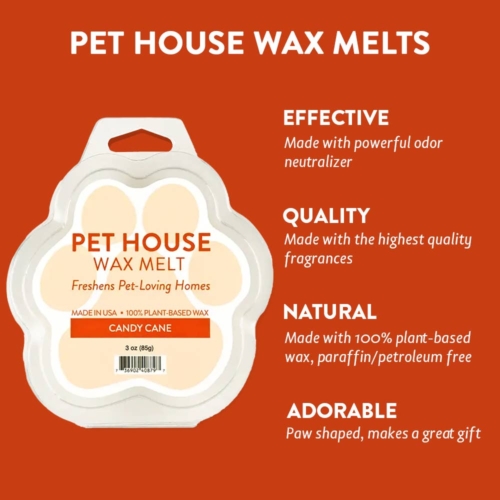 Candy Cane is a holiday favorite that combines peppermint with sweet vanilla.***All wax melts ship in cases of 12. You can mix a case with up to two fragrances (six units per fragrance).***One Fur All Products may not be sold on Amazon, Ebay or other 3rd party websites.Even if you don’t have a pet odor problem, Pet House Wax Melts make every pet-loving home smell fresh and clean. When guests come to your home, you’ll be CONFIDENT that your home smells great. Our wax melts are extremely effective without overpowering fragrance.Pet House Wax Melts include the powerful combination of an effective odor neutralizer and the highest quality fragrances. Pet House Wax Melts are adorably packaged in the shape of the paw and make a great gift for any pet parent.
