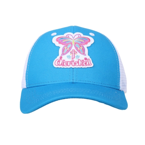 Celebrate faith, confidence, and joy with the Cherished Teal Cap, a bright expression of love and identity for young girls. This cheerful teal and white cap features an embroidered ìCherishedî patch accented by a butterfly and cross. It reminds every child that she is wonderfully made and deeply loved by God. Designed with playful colors and thoughtful details, itís perfect for daily wear at school, church, camp, or family outings.