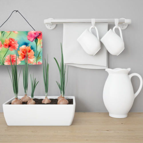 Wall or Door Hanging Prints featuring breed specific Carnations artwork. Add a splash of color and artistic flair to any indoor or outdoor space with our Aluminum Artwork Prints. These unique prints, featuring full-color, multicolor designs, provide a versatile decorative touch that can enhance a kitchen, bathroom, office, outdoor patio, or even the front door area. Each print measures 8 inches by 12 inches, making it the perfect size to catch the eye without overwhelming your space. Constructed with durability in mind, these prints can be placed outdoors and withstand direct sunlight for a significant amount of time before any fading begins. Designed for easy installation, each print features a black hanging rope and has a lightweight profile. This allows for quick hanging with just about any nail or screw. For safety and aesthetic appeal, the print’s corners are gently rounded. The back of the print showcases a brushed silver color for an added touch of elegance. Rust and fade-resistant, these Aluminum Artwork Prints are not only beautiful but are also built to last. Elevate your space with these stunning prints, crafted with care and artistic passion.