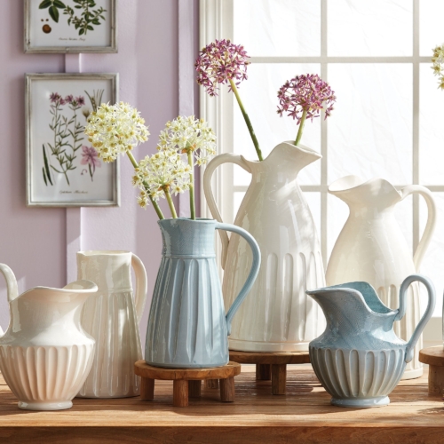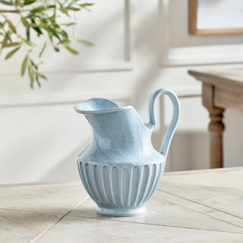 The Cascina Decorative Pitcher is handmade in Tuscany, Italy. With classic Italian craftsmanship passed down through generations, every piece is an original. A traditional Italian silhouette, the authentic texture and large handle give it a more artisan feel. A true masterpiece for kitchen island, console table or mantel. – Light Blue- Handmade in Italy