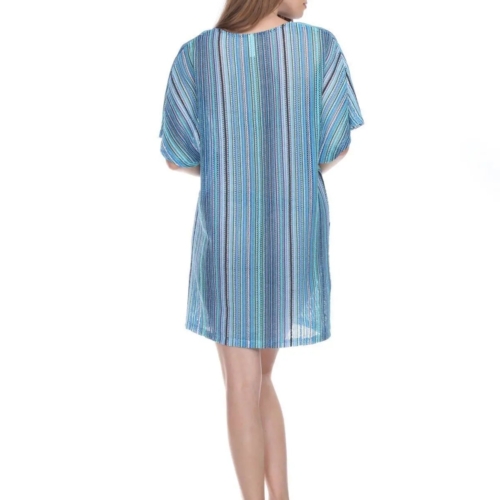 Casual Tunic Cover-Up In Multi-Color Stripes In Polyester