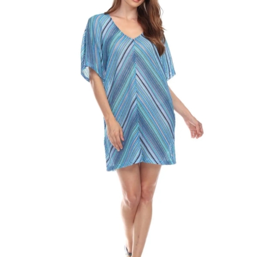 Casual Tunic Cover-Up In Multi-Color Stripes In Polyester