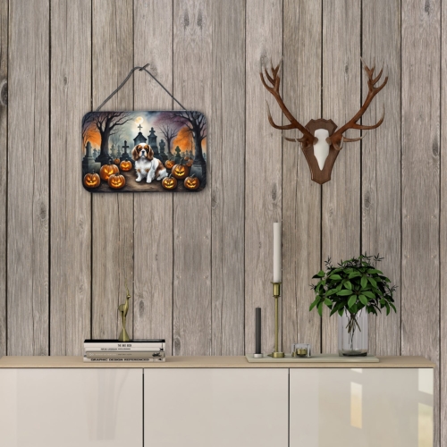 Wall or Door Hanging Prints featuring breed specific Cavalier Spaniel artwork. Celebrate Halloween with this Halloween Metal Print. Add a splash of color and artistic flair to any indoor or outdoor space with our Aluminum Artwork Prints. These unique prints, featuring full-color, multicolor designs, provide a versatile decorative touch that can enhance a kitchen, bathroom, office, outdoor patio, or even the front door area. Each print measures 8 inches by 12 inches, making it the perfect size to catch the eye without overwhelming your space. Constructed with durability in mind, these prints can be placed outdoors and withstand direct sunlight for a significant amount of time before any fading begins. Designed for easy installation, each print features a black hanging rope and has a lightweight profile. This allows for quick hanging with just about any nail or screw. For safety and aesthetic appeal, the print’s corners are gently rounded. The back of the print showcases a brushed silver color for an added touch of elegance. Rust and fade-resistant, these Aluminum Artwork Prints are not only beautiful but are also built to last. Elevate your space with these stunning prints, crafted with care and artistic passion.