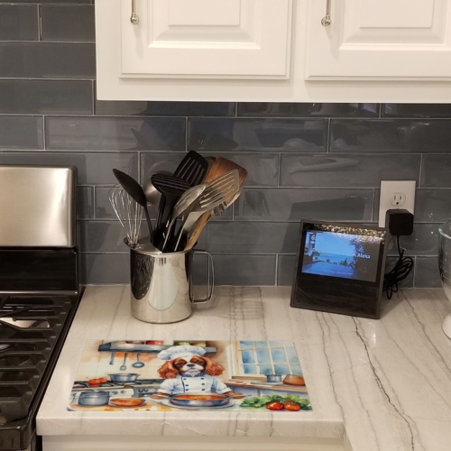 Glass Cutting Board featuring breed specific Cavalier King Charles Spaniel artwork. Introduce your kitchen to the vibrant, large Decorative Glass Cutting Board from Caroline’s Treasures. Crafted from resilient tempered glass, this board is not only a utilitarian necessity but also a colorful art piece. With its generous dimensions of 15 inches in height and 12 inches in length, it offers ample space for all your cutting needs. Every piece showcases captivating artwork from distinguished artists, bringing an aesthetic edge to your kitchen. Beyond its attractive design, this cutting board ensures your countertop stays pristine and unscathed, owing to its heat-resistant properties. Engineered with user convenience in mind, it features non-skid feet for stability, and rounded corners for additional safety. Its robust construction renders it virtually unbreakable, guaranteeing longevity. The board comes with protective feet bumpers, maintaining its position during use. This product is recommended to be hand washed only. Proudly printed and assembled in the United States, this cutting board exemplifies superior craftsmanship. With Caroline’s Treasures’ Decorative Glass Cutting Board, you’re investing in a blend of functionality and artistic flair.