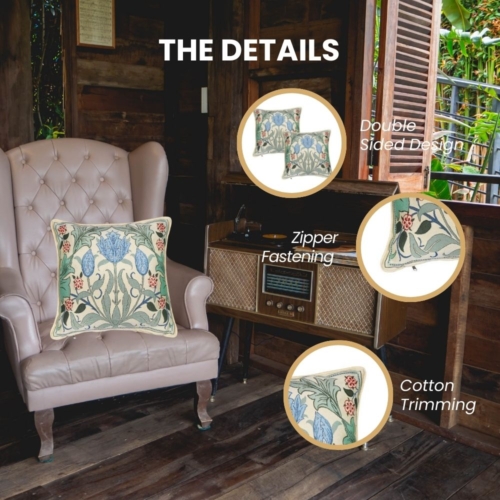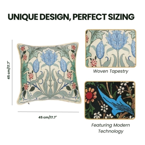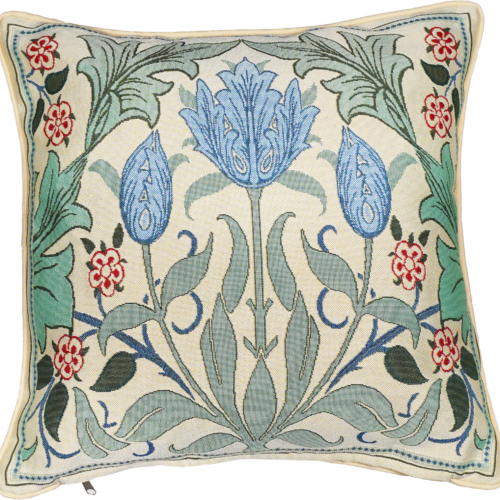 CCOV-PN-BLTULIP | WILLIAM MORRIS BLUE TULIP – PANELLED PILLOWCASE/CUSHION COVER 18X18 INCH