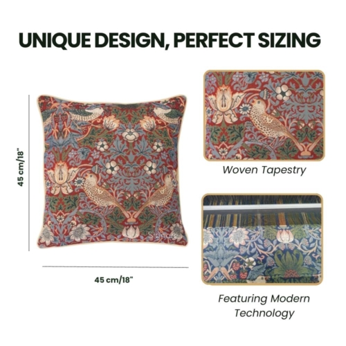 FABRIC COMPOSITION: 100% Polyester.EASY CARE: Clean it with a damp cloth. Do not soak in water.Lighten up your home with decorative pillow covers.[custom_html]UNIQUE LIFESTYLE DESIGN: Charming and romantic, this beautiful romantic Pimpernel floral pattern in green thyme by William Morris is eternally elegant and enchanting. The gorgeous red and cream tones look great with both modern or antique interiors. PRODUCT DESCRIPTION: A decorative pillowcase that is sure to liven up any room in the house This modern, tapestry cushion design makes the perfect scatter cushion for a modern finish and is a welcome addition in any home Pillow covers 18×18 inches The unique cushion covers have a double-sided tapestry cushion with a piped edge Concealed zip on one end to allow pad to be removed for washing or replacement The drawing is represented on both sides Size: 18 x 18 inches – Weight: 0.63 lb See All Pillowcase Designs [/custom_html]