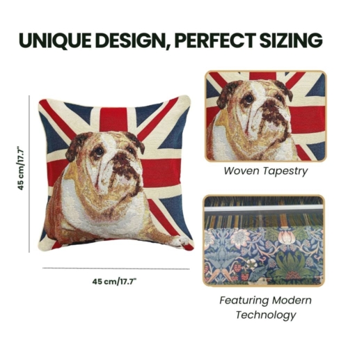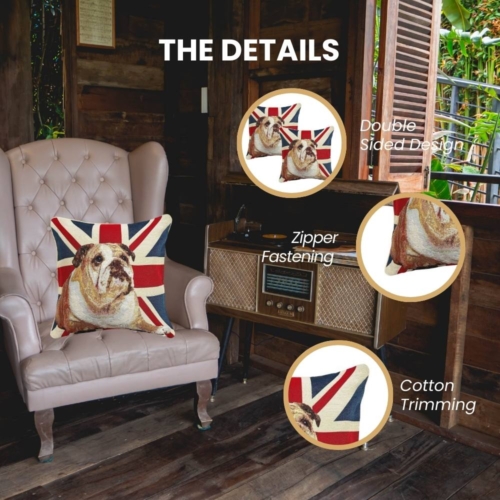 CCOV-PN-UJBULL | Union Jack Bulldog- PANELLED PILLOWCASE/CUSHION COVER 18X18 INCH