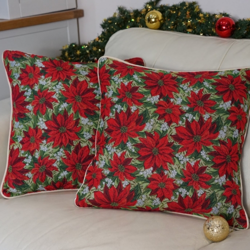 CCOV-XMAS-POIN | XMAS POINSETTIAS PILLOWCASE CUSHION COVER 18X18 INCH