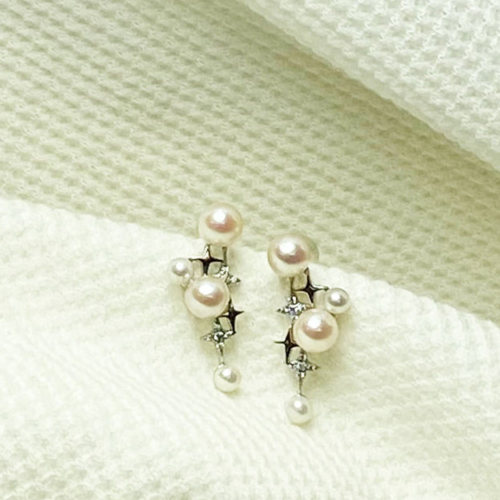 Our fresh water pearl star earrings features a whimsical star and bubble cluster design with lovely pearls beautifully adorning your earlobes. product detailsProduct Type: EarringsProduct Measurements: 1.37″X 0.79″Pearl Type: Fresh Water PearlPearl Size: 5.9mm/3.6mmPearl Color: WhiteMetal Type: S925 Sterling SilverStone Type: Zircon Freshwater Cultured PearlsFreshwater pearls generally have a bodycolor of white, cream, yellow, orange, pink or purple, these subtle pastel colors are unique to the freshwater variety. In addition, they often have an overtone of pink, blue and green, and can sometimes display beautiful orient, especially in the case of irregular baroque shapes. Color terms such as “apricot”, “peach”, “lavender” are often used to vividly describe these gems. Pearl Care & Additional Information