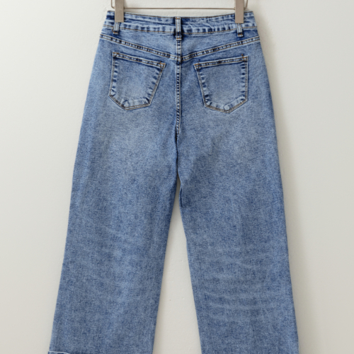 Center Seam Cuffed Hem Straight High Waist Jeans – (GD478756474 ~ BLUE)
