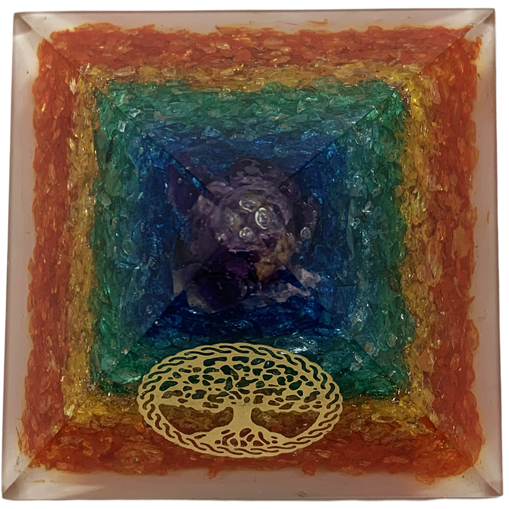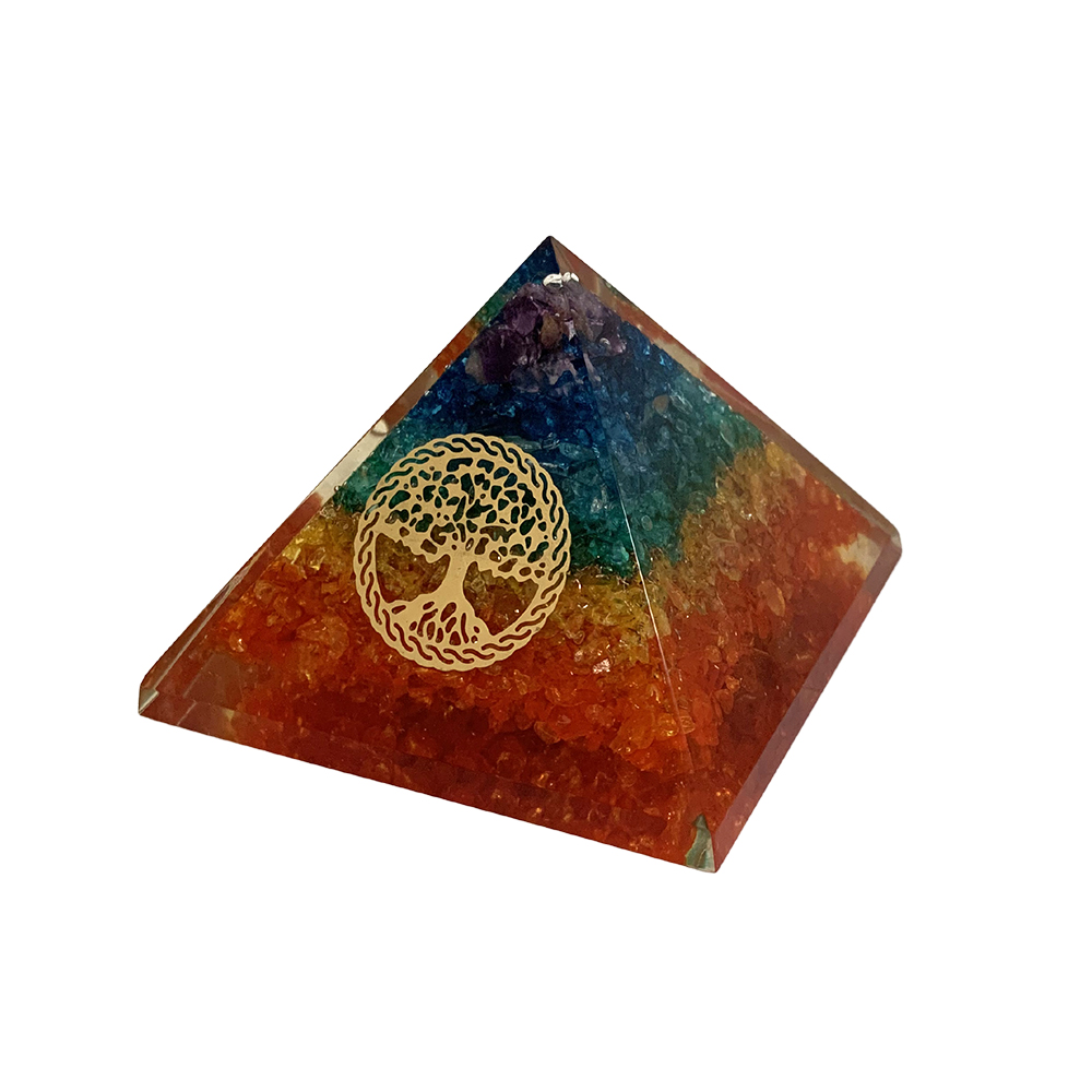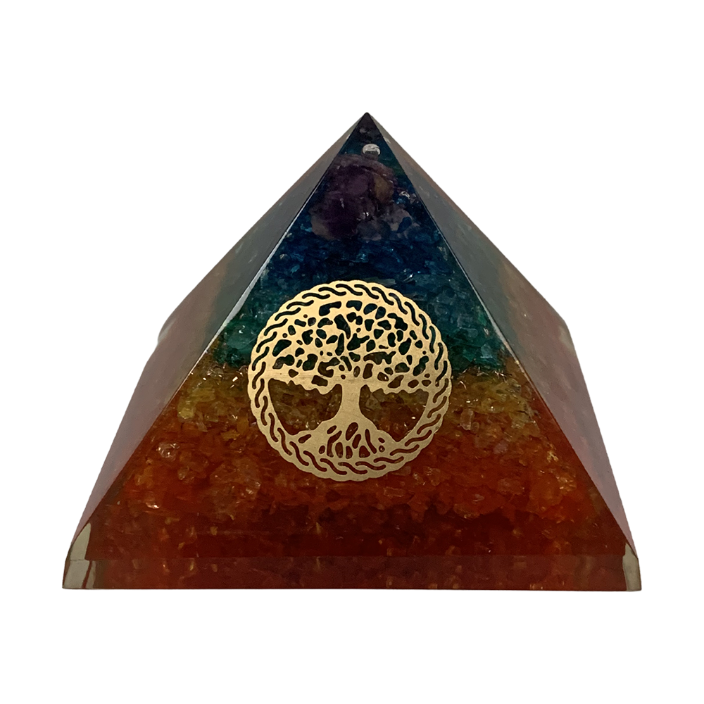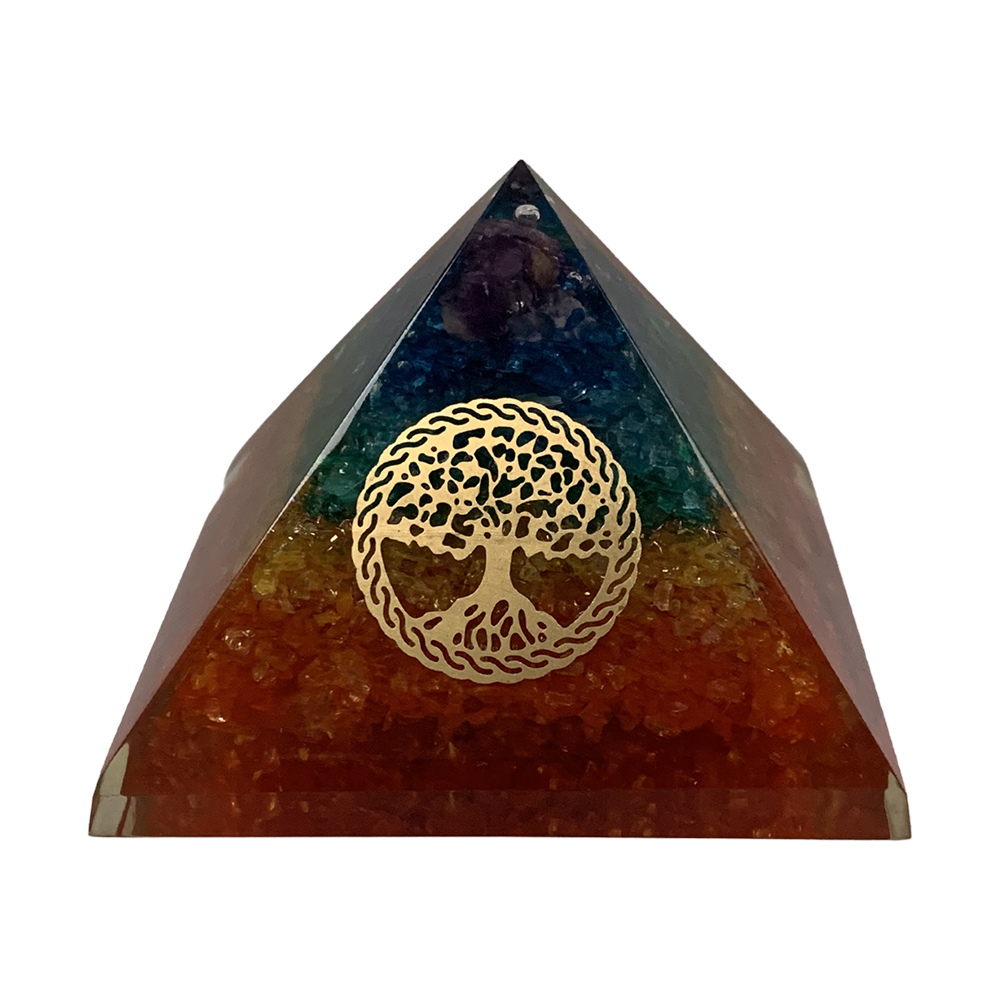 Orgonite is a mixture of catalyzed fibreglass resin with metal shavings, particles or powders, poured into moulds. It is said that the orgone energy is the universal life energy from which all nature, pervasive and omnipresent, is created. The Orgone Pyramid creates a peaceful environment by enhancing the positive energies in a room. It brings a significant effect on cleaning, healing and purifying. The tree of life is a spiritual meaning symbol, which is the connection between heaven and earth. Its branches are up the sky and roots are deep down to the ground.