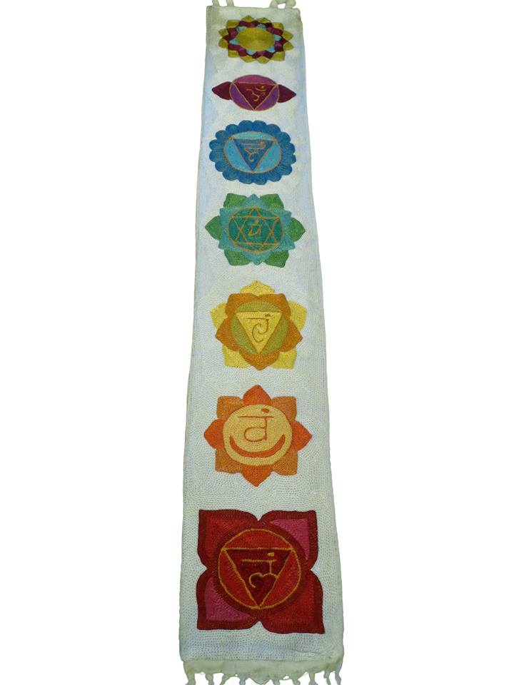 A stunning Chakra hanging for a blissful visual sensory experience of the Chakras. 100% Hand stitched with sustainable vegan materials and the pure essence of human spirit.