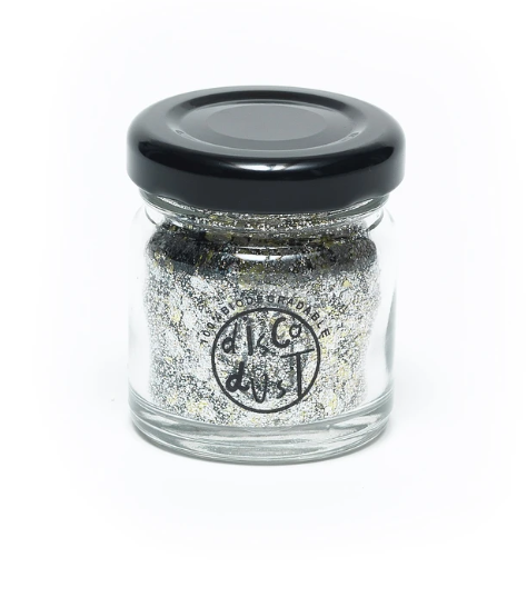 Hexagonal grain mix of biodegradable cosmetic grade glitter in 18g Glass Jar