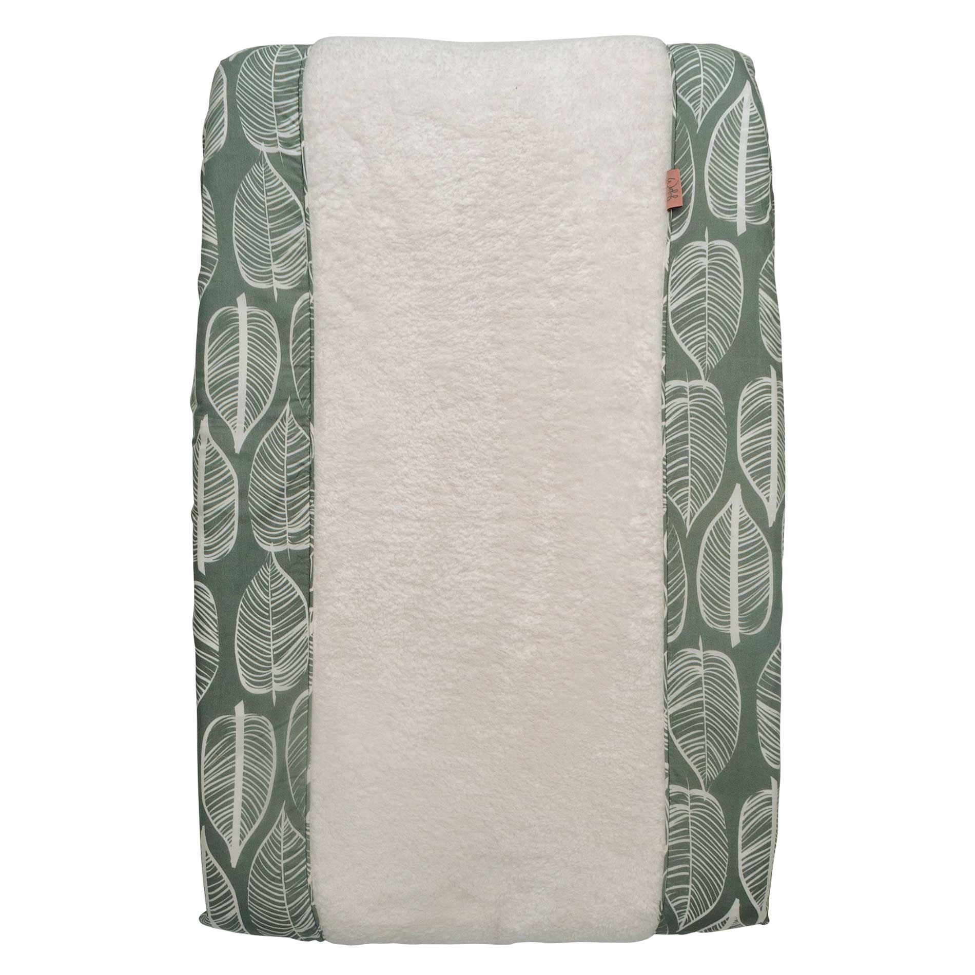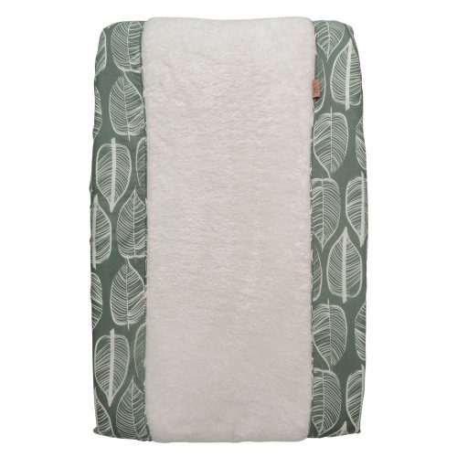 The changing pad cover ‘Dream & Beleaf’ comes in a unique warm green & offwhite leafs print. The cover is finished with a piping in the same design. The surface is made of a supersoft offwhite teddy fabric to ensure your little one lays comfortably when being changed. The changing pad cover has an elastic board all around so that it easily fits every standard changing pad up to a size of 75x46x11cm.