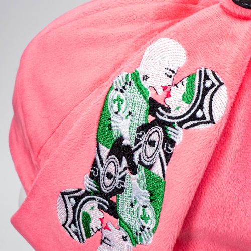 Limited version and unique design hat for the runway of International Fashion Week Paris. This Fall/Winter hat design is 100% craftsmanship and started from just hand-sketches to graphic design, the outshone – beyond imagination recalls the divine atmosphere of 1950s’ Las Vegas casino – where “the cool” meets “haute-couture”. This design is unique as an artwork we could either wear daily or keep as a beautiful memory. The high-level art in embroidery craftsmanship with the silhouette of “the Queen” (Q card) creates the signature detail that trademarks the spirit for the whole collection. The re-stylized Queen captures both feminism and the beauty of unisex – as we cherish the future of gender-fluid (much as we expecting Royal Flush on our hand in Poker Game). This is now, this is the future, no gender boundaries, no boundaries at all. This is fashion, this is Yvette’s spirit.
