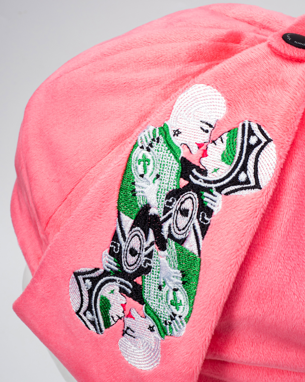 Limited version and unique design hat for the runway of International Fashion Week Paris. This Fall/Winter hat design is 100% craftsmanship and started from just hand-sketches to graphic design, the outshone – beyond imagination recalls the divine atmosphere of 1950s’ Las Vegas casino – where “the cool” meets “haute-couture”. This design is unique as an artwork we could either wear daily or keep as a beautiful memory. The high-level art in embroidery craftsmanship with the silhouette of “the Queen” (Q card) creates the signature detail that trademarks the spirit for the whole collection. The re-stylized Queen captures both feminism and the beauty of unisex – as we cherish the future of gender-fluid (much as we expecting Royal Flush on our hand in Poker Game). This is now, this is the future, no gender boundaries, no boundaries at all. This is fashion, this is Yvette’s spirit.