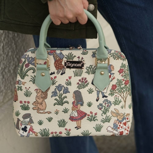 FABRIC COMPOSITION: 100% Polyester.EASY CARE: Clean it with a damp cloth. Do not soak in water.Express your individuality through Signare! [custom_html]UNIQUE LIFESTYLE DESIGN: Inspired by the English textiles designer Charles Voysey also known as CFA Voysey, the 2017 Alice in Wonderland Collection features all of the weird and wonderful creatures you know and love (Alice in Wonderland characters). From the eccentric and unpredictable Mad Hatter to the witty Cheshire Cat, make an entrance with this design classic. PRODUCT DESCRIPTION: Proven to be one of our most popular tapestry bags with shoulder strap styles and one of the best shoulder bags for women. This elegantly designed classic top handled handbag is one that can serve as a fantastic choice for your everyday needs Brilliant choice for small travel, evening walks or overnight Features a modest area for storing your handbag essentials, with an open sleeve and zip up pocket also featured on the inside Fully lined with a patterned nylon Faux leather handle and detachable shoulder straps included Has the option to be worn as a handbag or converted into a cross body or shoulder style bag Fitted with a full length zip fastener Solid base with 4 studded feet Size: 12.5 x 9 x 5 inches – Weight: 1 lb See All Convertible/Top Handle Purse Bag DesignsSee All The Styles/Models in Alice in Wonderland [/custom_html]