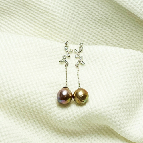 Our fresh water baroque pearl long drop earrings features an elegant drop/dangling design adorned with dainty stones in the shape of beautiful leaves giving way visually to the star, a gorgeous pearl. product detailsProduct Type: EarringsProduct Measurements: 2.57″X 0.84″Pearl Type: Fresh Water Baroque PearlPearl Size: 11.5mm Pearl Color: MetallicMetal Type: S925 Sterling SilverStone Type: Zircon Freshwater Cultured PearlsFreshwater pearls generally have a bodycolor of white, cream, yellow, orange, pink or purple, these subtle pastel colors are unique to the freshwater variety. In addition, they often have an overtone of pink, blue and green, and can sometimes display beautiful orient, especially in the case of irregular baroque shapes. Color terms such as “apricot”, “peach”, “lavender” are often used to vividly describe these gems. Pearl Care & Additional Information