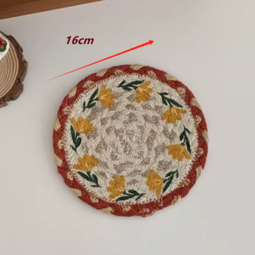 Brighten up your table with our delightful set of coasters featuring a cheerful string of yellow flowers. Made from high-quality cotton and linen, these coasters are not only visually appealing but also highly absorbent, keeping your surfaces protected from spills and stains. Their charming design adds a touch of elegance to any setting, whether it’s a casual breakfast or a formal dinner. Easy to clean and perfect for any occasion, these coasters are a stylish and practical addition to your home. 🌿💛