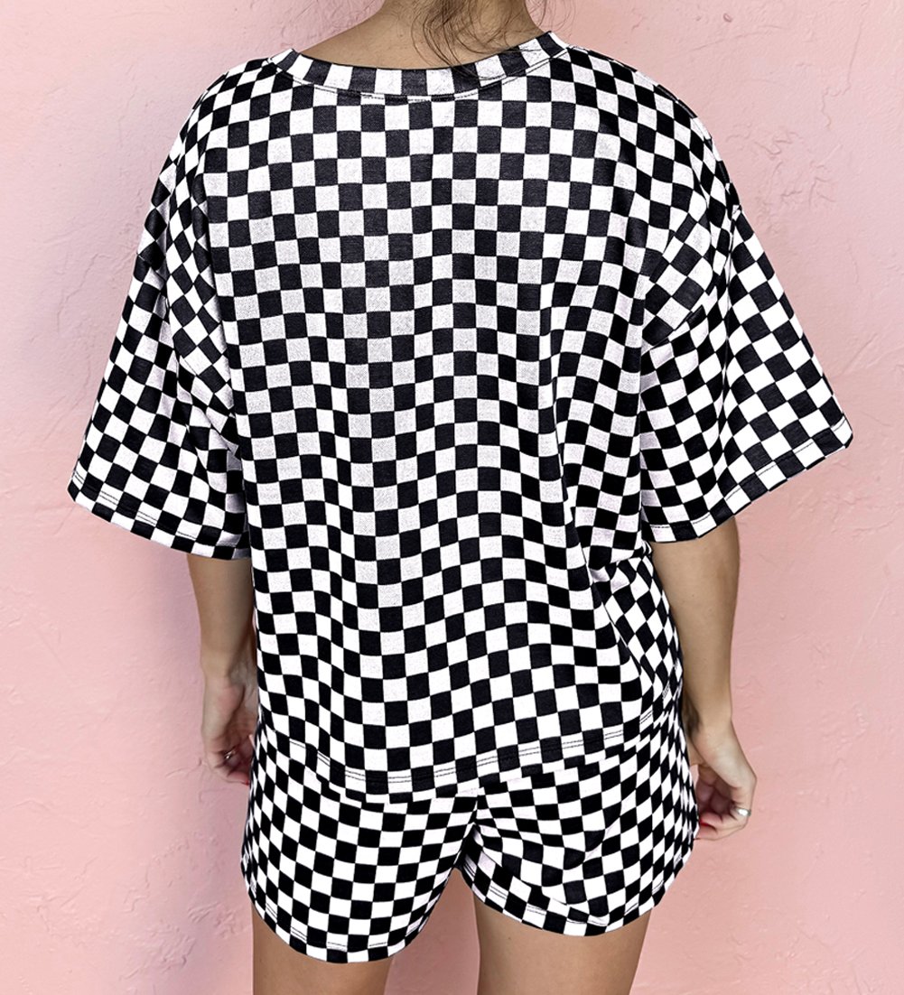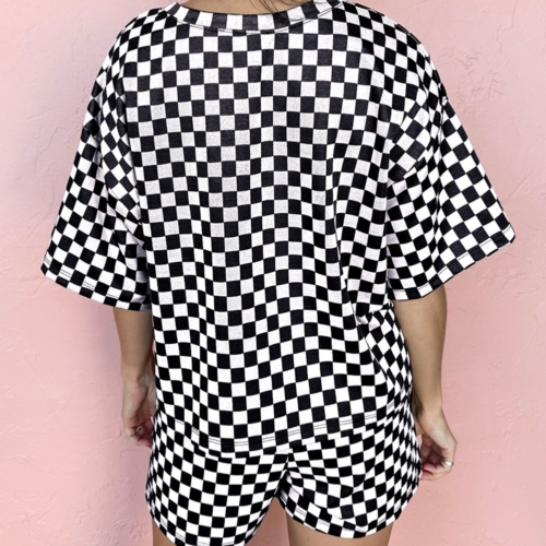 Checkered Top and Short Casual 2pcs Set – (GD21514402 ~ BLACK)