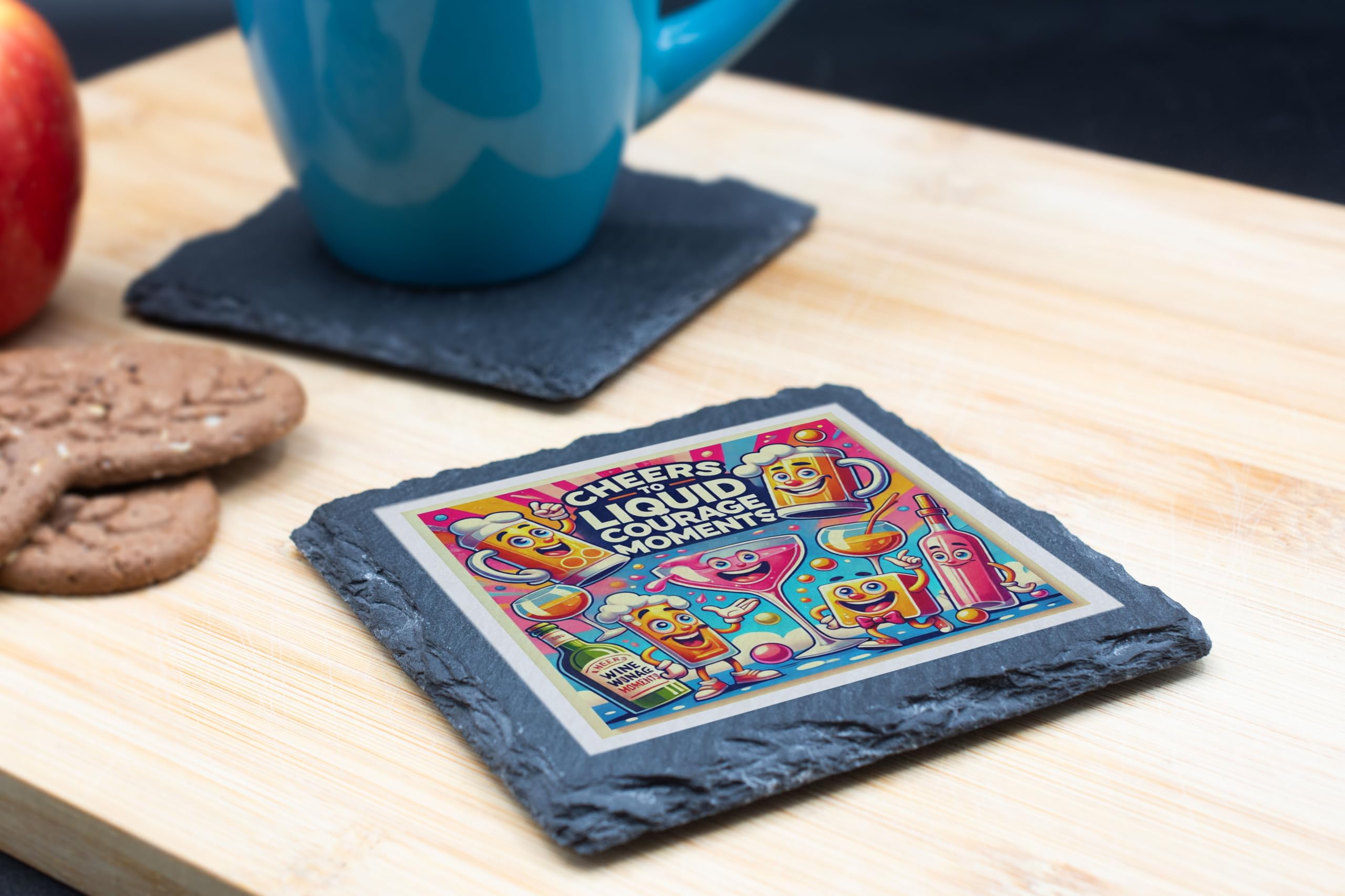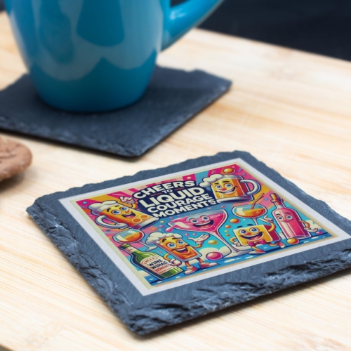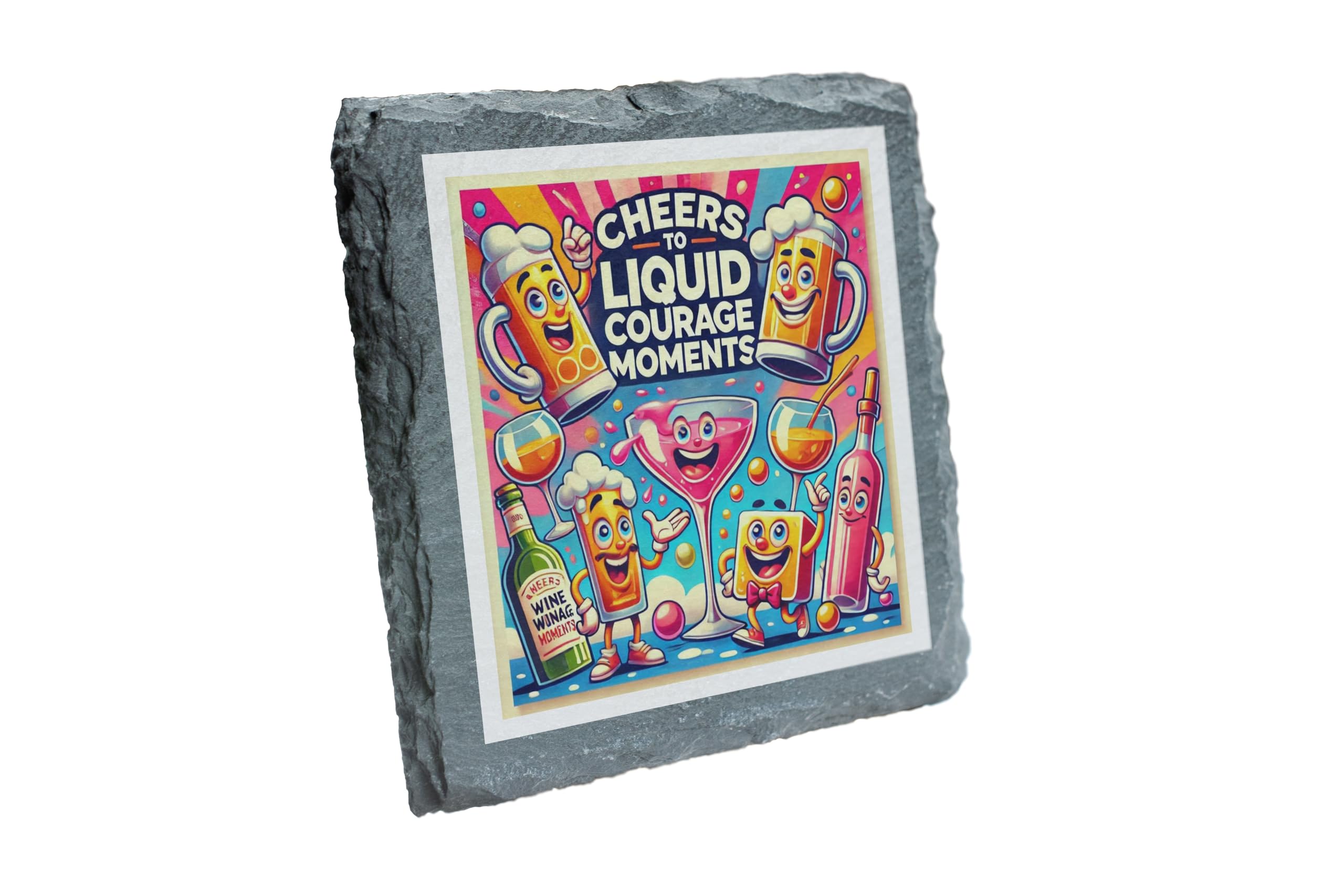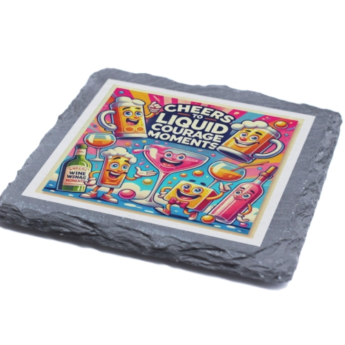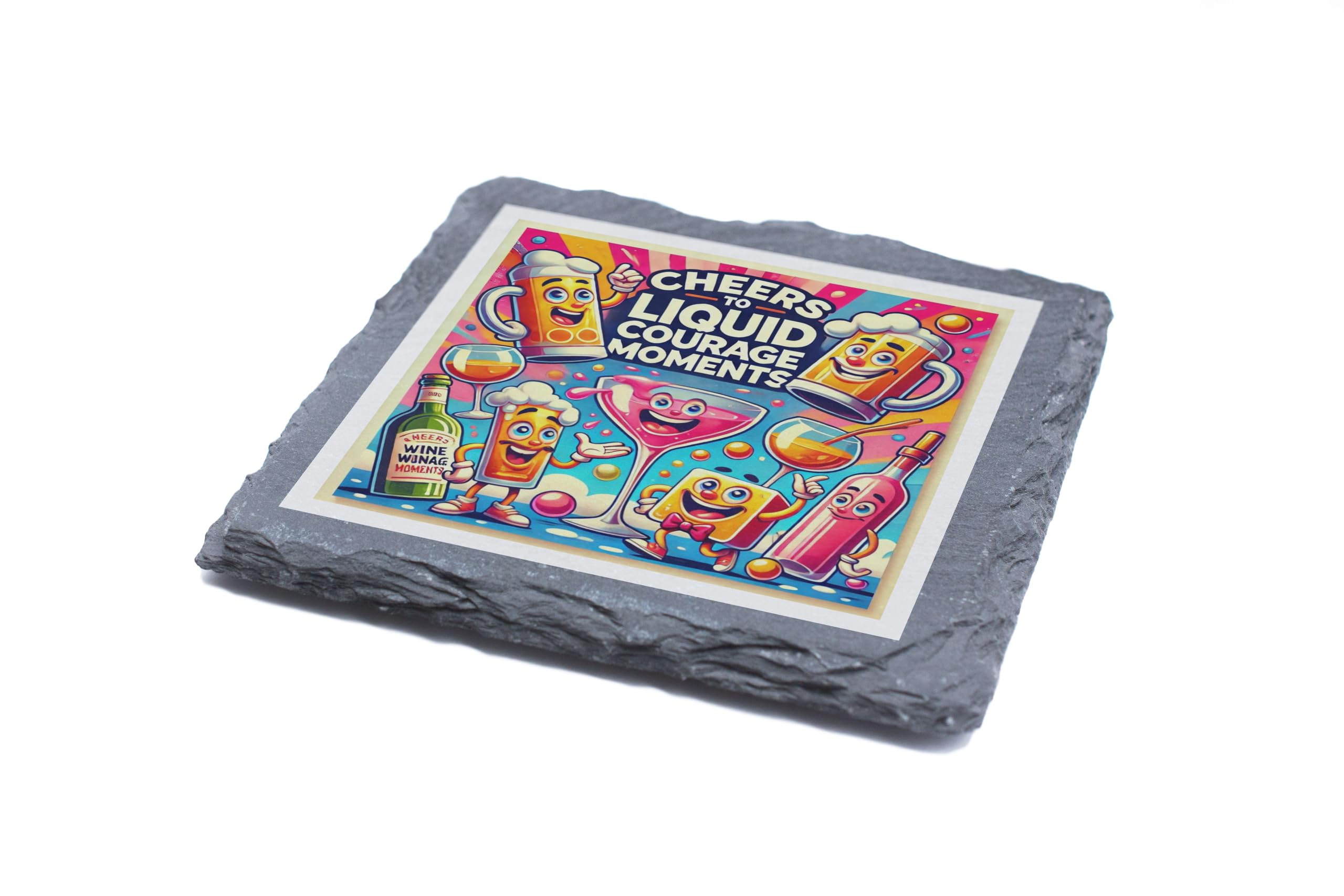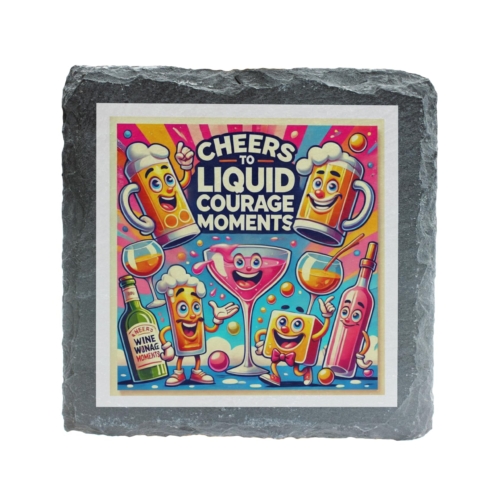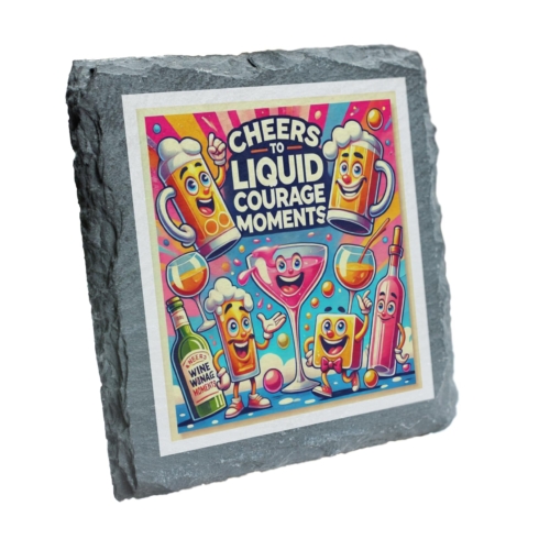 Add a splash of fun to your drinkware collection with this Cheers to Liquid Courage Moments Slate Coaster. Designed with vibrant cartoon characters and a playful theme, this coaster is perfect for those who enjoy humor and good times. Whether you’re toasting to a special moment or simply enjoying your favorite drink, this quirky coaster sets the mood for a lively atmosphere. Crafted from durable natural slate, it offers both protection for your surfaces and a unique decorative appeal. Ideal for home bars, party settings, or even as a distinctive addition to your dining table. This coaster isn?t just functional?it?s a statement piece that sparks smiles and laughter. Celebrate your love for good drinks and great company with this cheerful and eye-catching coaster. It also makes for a fantastic gift for birthdays, housewarming parties, or any occasion worth raising a glass! Vibrant Cartoon Design: Features a lively and colorful cartoon-style illustration of cheerful drinks celebrating “Liquid Courage Moments.” Premium Slate Material: Made from high-quality natural slate, ensuring durability and a stylish textured finish. Protective and Practical: Shields your surfaces from scratches and drink stains while being a standout conversation starter. Perfect for Celebrations: A fun addition to parties, gatherings, or casual evenings, designed to make every toast memorable. Unique Gift Idea: An excellent present for friends, family, or anyone who loves humor and quirky bar accessories.