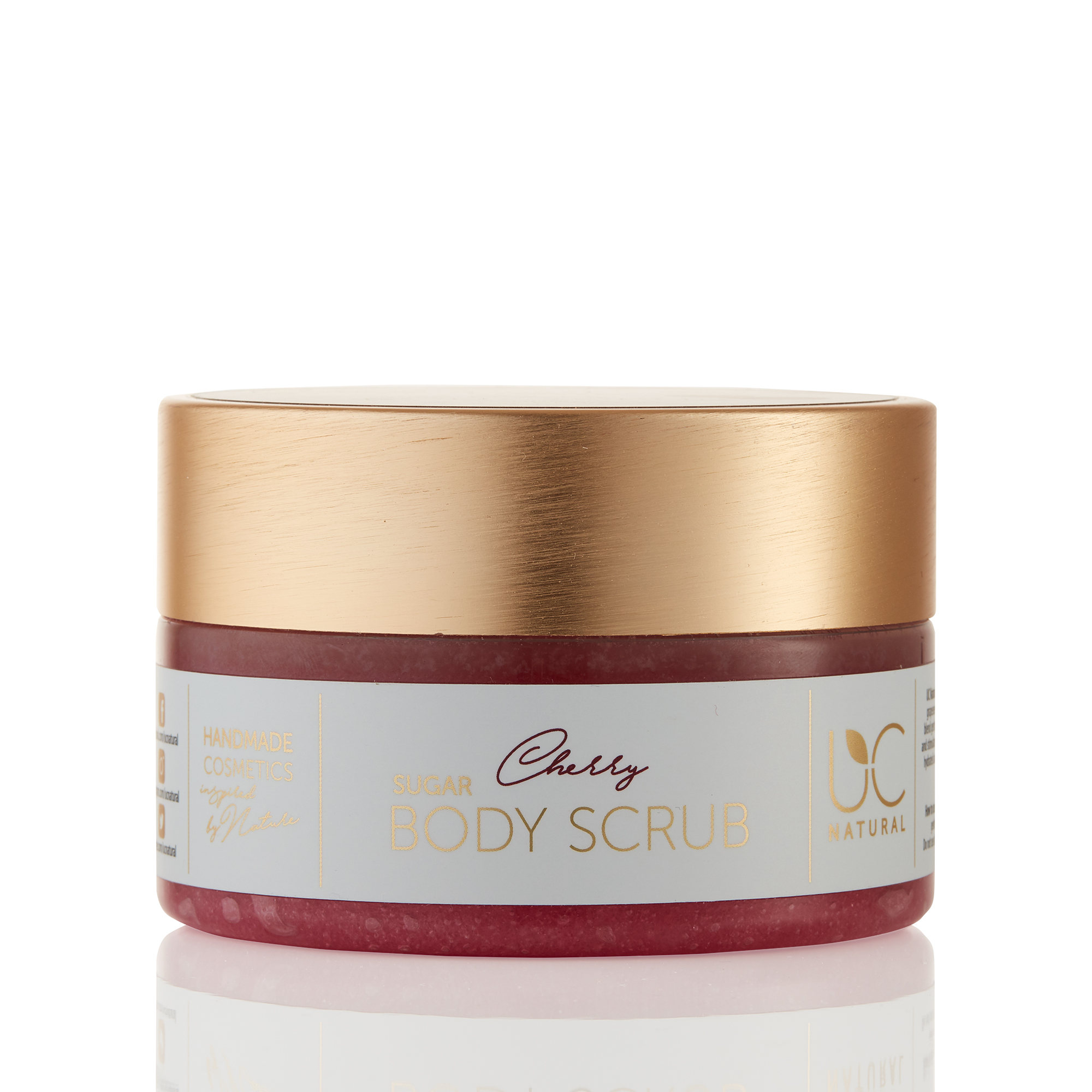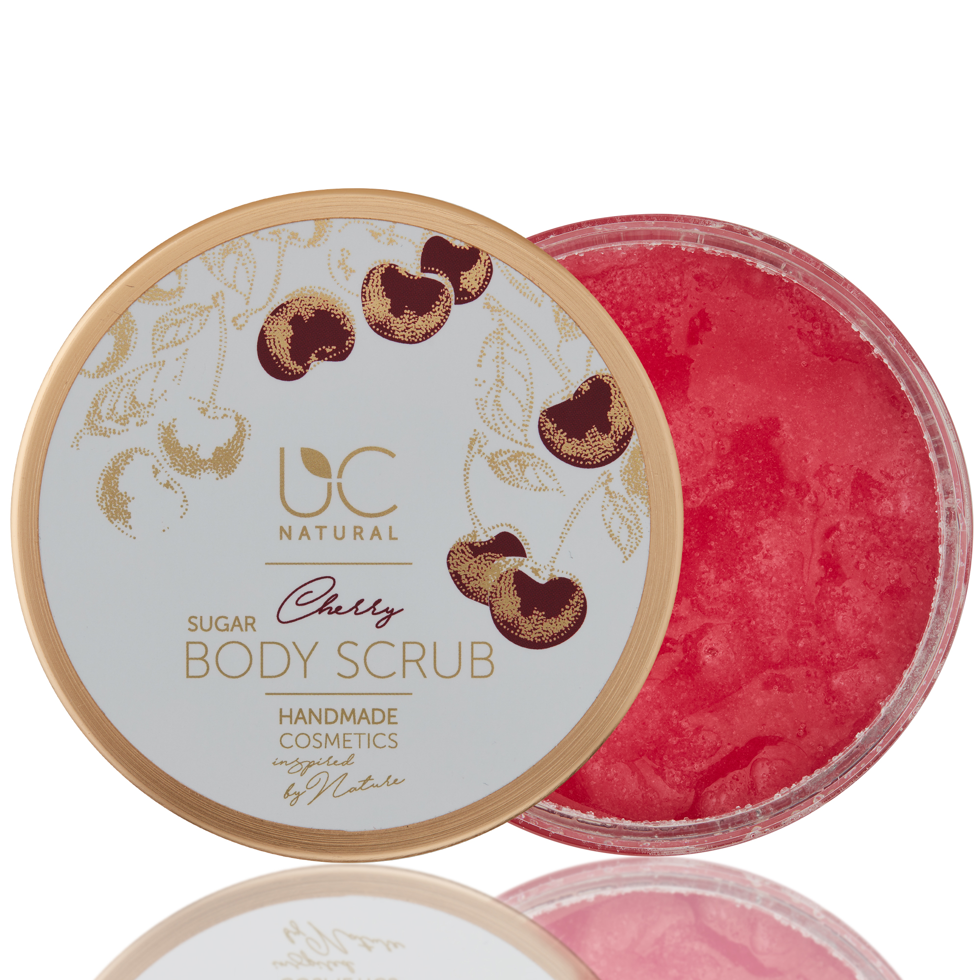 UC Natural Handmade Sugar Body Scrub is enriched with olive and grapeseed oil, cocoa butter, shea butter, and beeswax. This natural blend gently removes keratinized particles, improves blood circulation, and stimulates metabolism in the skin. After use, the skin gets nourished, hydrated, and soft. The natural aroma of Cherry will leave a marvelous and long-lasting scent on your body.