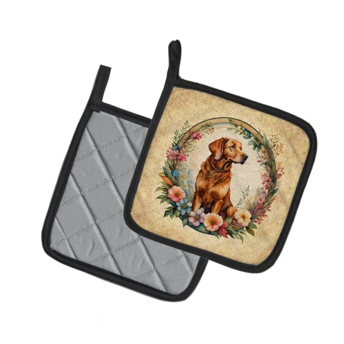 Chesapeake Bay Retriever and Flowers Pair of Pot Holders