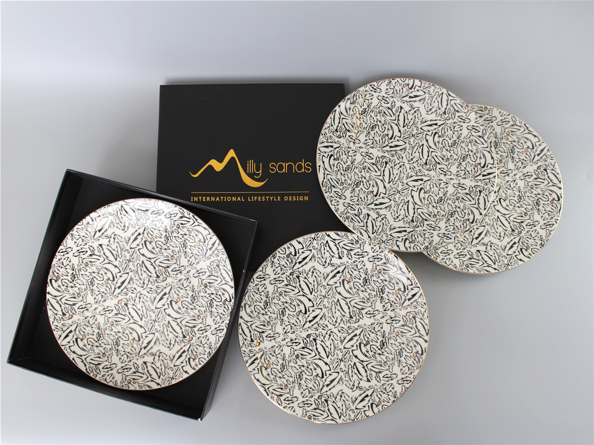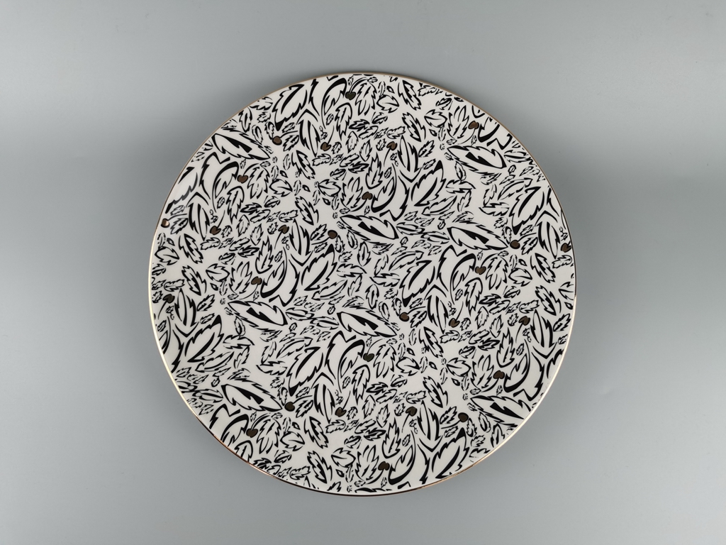 Dinner plate inspired by the green woods of the UK, with accents of gold to highlight the regency of this country. Additional gold rim for added elegance.