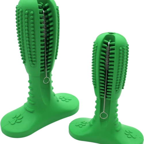 When your dog chews the toy, the toy will effectively clean teeth and promote a strong jaw; The bristles on the dog toothbrush are neatly aligned; Place dog toothpaste into the groove of the dog toothbrush stickDog chewing toothbrush toy is made of natural upgraded materials that are sturdy enough to withstand tearing and chewing by your dog; Especially suitable for dogs who have difficulty in brushing their teeth every day as dogs love to chew on toothbrushes; Sturdy dog toys help to keep your dog’s teeth clean in a gentle way!It has a great bounce and energetic dogs love to throw it around as it bounces back Ideal for cleaning teeth and also helps to release stress; Sturdy chew toy for puppies and medium sized dogs, can also be used as a toothbrush for dogs that are strong chewers.Perfectly designed and made of materials to ensure dogs don’t lose their teeth while playing with fun dog toys while helping to clean their teeth; Super chewers and playful pups will love it; Easy to clean and dishwasher safe; Aconhop Recommended to be cleaned before use.The squeaky dog toy makes fun sounds and makes your dog more excited by engaging in chewing for a long time.