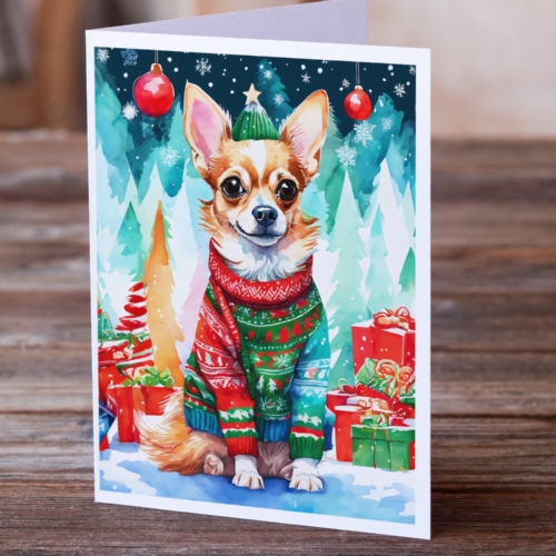 Greeting Cards Pack of 8 featuring breed specific Chihuahua artwork. Celebrate Christmas with this Christmas . Celebrate special moments with Caroline’s Treasures Printed Greeting Card Pack. This pack includes eight beautifully folded 5×7 cards, accompanied by eight matching white envelopes. With blank interiors, these cards provide ample space for your personalized messages and heartfelt holiday greetings. Each card features captivating full-color artwork, meticulously printed in our facility on high-quality 80 lb cover stock or 216 GSM. The super smooth finish of the white cards enhances the visual impact of the artwork, creating a truly stunning presentation. Designed by our talented in-house artists or licensed artists, the artwork on these cards showcases their creativity and attention to detail. From vibrant illustrations to captivating designs, each card tells its own unique story. Whether it’s for birthdays, anniversaries, holidays, or any special occasion, Caroline’s Treasures Greeting Card Pack is the perfect way to convey your heartfelt sentiments. Share joy, love, and warm wishes with these exquisite cards and make every moment unforgettable.