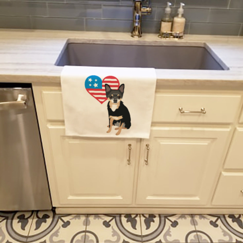 Kitchen Towel Set of 2 featuring breed specific Chihuahua artwork. This Kitchen Towel Set of 2 is from Caroline’s Treasures collection Patriotic USA. Spruce up your kitchen decor with Caroline’s Treasures Decorative White Kitchen Towel Set. This set of two dish towels showcases beautiful artwork from one of our talented artists, making them both practical and visually appealing. These towels are crafted from 100% cotton, offering excellent absorbency and durability, making them ideal for any kitchen task. Each white towel measures 19 inches by 28 inches, providing ample coverage for drying dishes or wiping up spills. The standout feature of these towels is the full-color artwork design printed on each one. They can serve as a vibrant accent in your kitchen, turning a functional item into a delightful piece of decor. When it comes to care, these towels are machine washable in cold water and can be dried on low heat. Remember to always use a pressing cloth when pressing the design, and avoid using bleach on the decorated towel. The Decorative White Kitchen Towel Set makes a great gift or a stylish addition to your own kitchen.