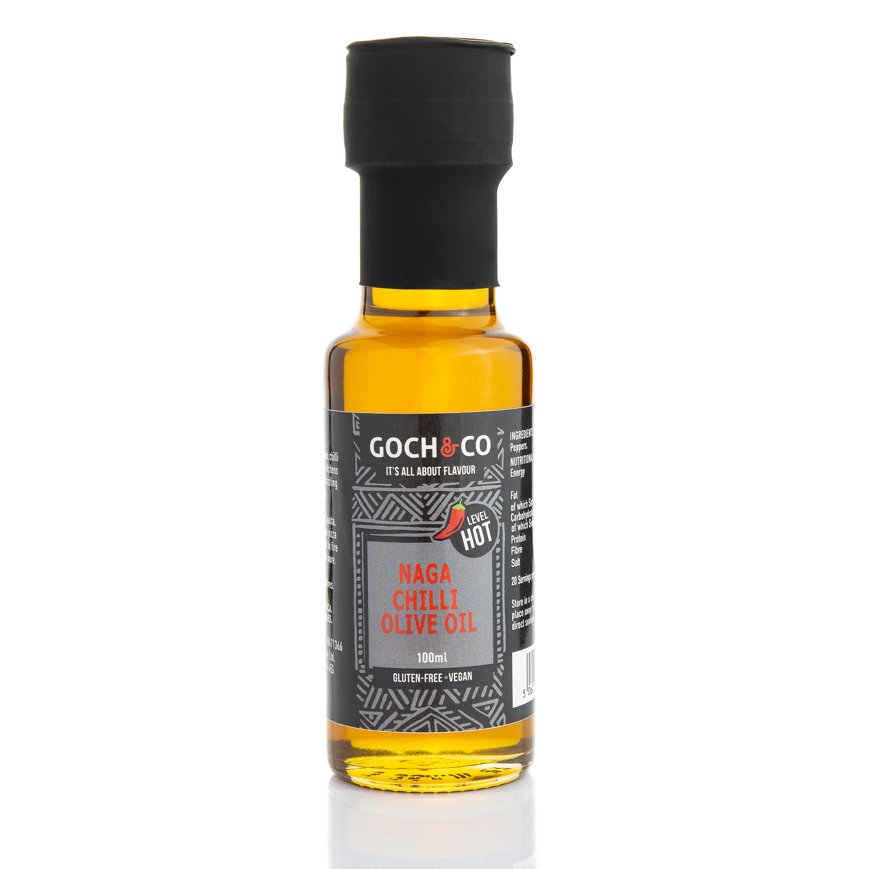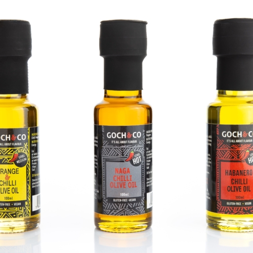 Made with Extra Virgin Olive Oil, this pack comes with three, delicious mild to hot flavours. Description: Chilli Olive Oil is great for drizzling over pizza, vegetables, and roasted potatoes and meat, bread, salad, pasta dishes, risotto, spring rolls, and soup. A great present or corporate gift. Personalised gift set available on request. Contents: GOCH OLIVE OIL TRIO GIFT SET 1 x Orange & Chilli Olive Oil – a mild to medium chilli flavoured olive oil, with spicy and zesty aromas. 1 x Habanero Chilli Olive Oil – a medium to hot chilli flavoured olive oil, with a light sweet taste and spicy aromas. 1 x Naga Chilli Olive Oil – a hot chilli olive oil, with earthy overtones and fiery aromas Gluten-free. No GM. No GMS. Vegetarian. Vegan. No Artificial Additives, Colours, or Flavourings. No Added Sugars. Recyclable pack. Made in Wales, UK. Country of origin: Wales, United Kingdom. Storage: Store in a cool and dry place.