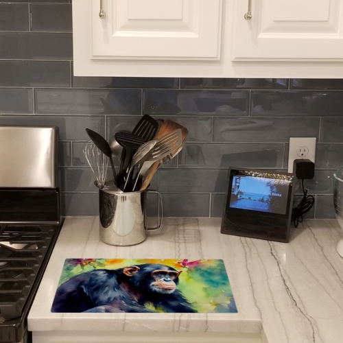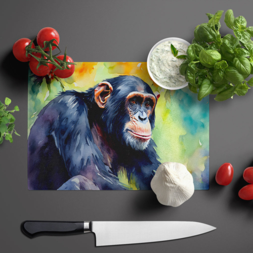 Glass Cutting Board featuring breed specific Chimpanzee artwork. Introduce your kitchen to the vibrant, large Decorative Glass Cutting Board from Caroline’s Treasures. Crafted from resilient tempered glass, this board is not only a utilitarian necessity but also a colorful art piece. With its generous dimensions of 15 inches in height and 12 inches in length, it offers ample space for all your cutting needs. Every piece showcases captivating artwork from distinguished artists, bringing an aesthetic edge to your kitchen. Beyond its attractive design, this cutting board ensures your countertop stays pristine and unscathed, owing to its heat-resistant properties. Engineered with user convenience in mind, it features non-skid feet for stability, and rounded corners for additional safety. Its robust construction renders it virtually unbreakable, guaranteeing longevity. The board comes with protective feet bumpers, maintaining its position during use. This product is recommended to be hand washed only. Proudly printed and assembled in the United States, this cutting board exemplifies superior craftsmanship. With Caroline’s Treasures’ Decorative Glass Cutting Board, you’re investing in a blend of functionality and artistic flair.