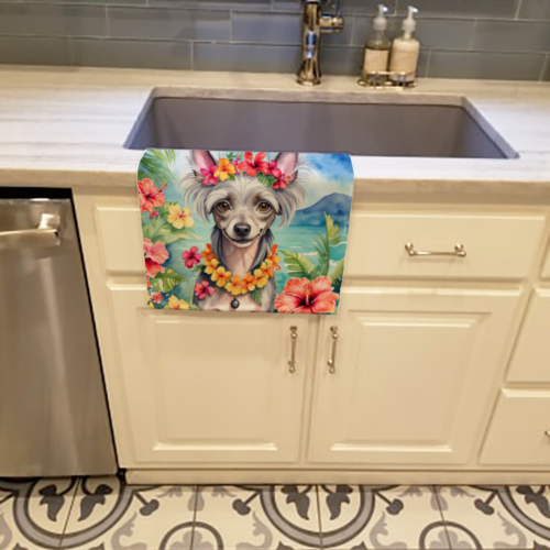 Kitchen Towel featuring breed specific Chinese Crested artwork. Experience the perfect blend of aesthetic appeal and functional excellence with our Plush Velour Kitchen Towels. These are not your ordinary decorative kitchen towels that gather dust. Instead, they are designed to be as practical as they are stylish. The front layer of our towel is constructed from a minky plush polyester, known for its durability and color retention. Unlike conventional kitchen towels, the artwork on our towels is dyed directly into the fabric, ensuring vibrant colors that last. Polish your glassware to a brilliant sparkle using the plush front side of the towel. Flip to the back, crafted from 100% cotton terry loop, to exploit its exceptional absorbency for drying dishes or wiping down counters. Our kitchen towels redefine the concept of functional art, offering lasting quality that maintains the towel’s shape over time. Measuring 15 inches by 25 inches and weighing 2.3 lbs per dozen, these towels deliver an overwhelming sensory experience with their soft, plush, and smooth texture. The edges are meticulously finished with binding, enhancing their durability and visual appeal. For your convenience, these towels are machine washable and can be dried on low heat. After the first wash, the top fabric becomes even softer and fluffier, eliminating the need for ironing. Treat your kitchen to the luxury and functionality it deserves with our plush velour kitchen towels.
