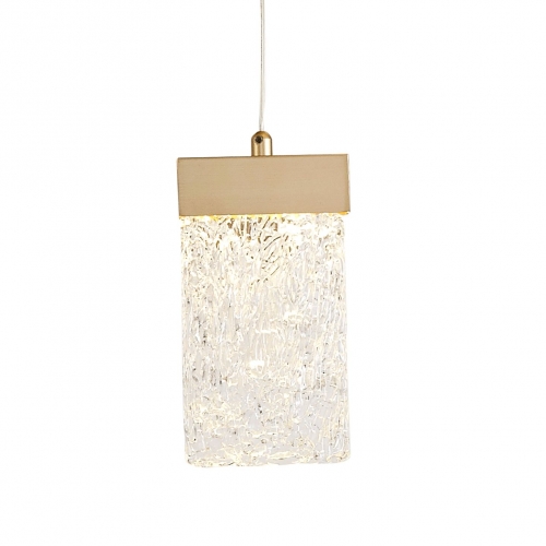 This multiple pendant has a painted brush gold finish which offsets perfectly against the 3000K integral LEDs. Each staggered suspension drop hosts a glass piece moulded to reflect crystallised ice which sits beneath the gold bands in which house the LED’s. This pendant is visually dazzling when the fitting is illuminated yet still intriguing when the light is not in use.