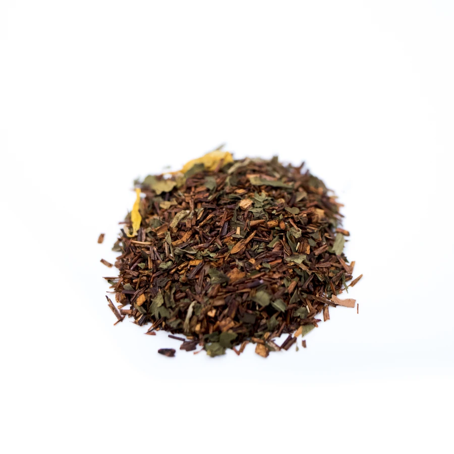 Ingredients: Rooibos, Peppermint, Calendula and Sunflower Petals, Carob and Cacao bean pieces and natural flavours